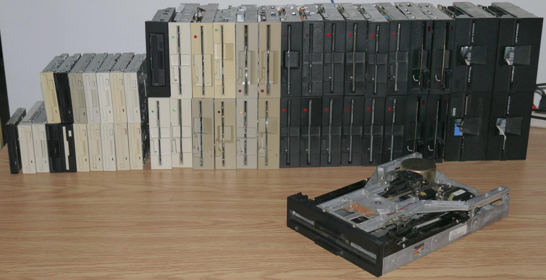 1 Shugart SA-400 1 Shugart SA-400L (Digital logo on face) 3 Tandon TM100-2A (One with IBM logo etched pm face) 1 Texas Peripherals ???