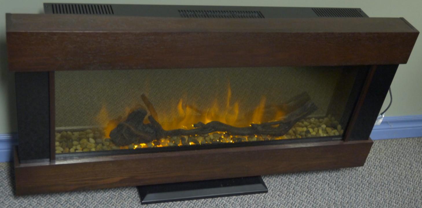 Dimplex electric fireplace. Can be freestanding, or mounted with wall brackets (included). Also has a remote control.
