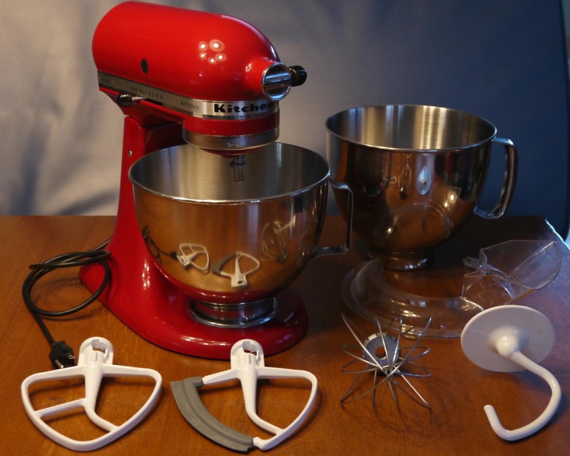 Excellent condition, used very little. Includes the standard Beated, Wisk and Dough-hook, as well as extra bowel, pouring shield and Beater.