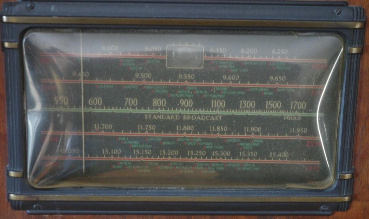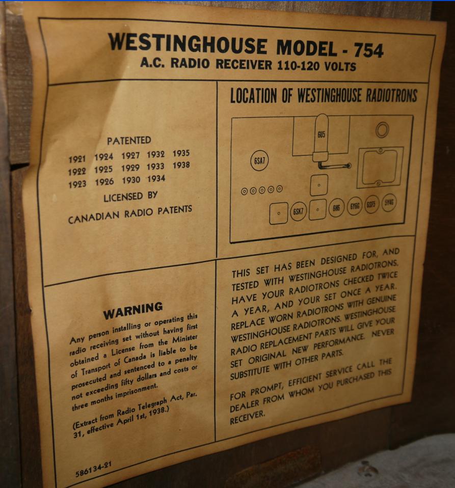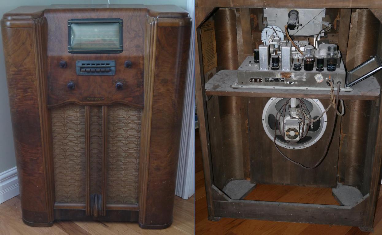 Antique Westinghouse Model-754 floor Radio. Covers standard broadcast (AM) as well as shortware bands. Has a "Magic EYE" tuning indicator.